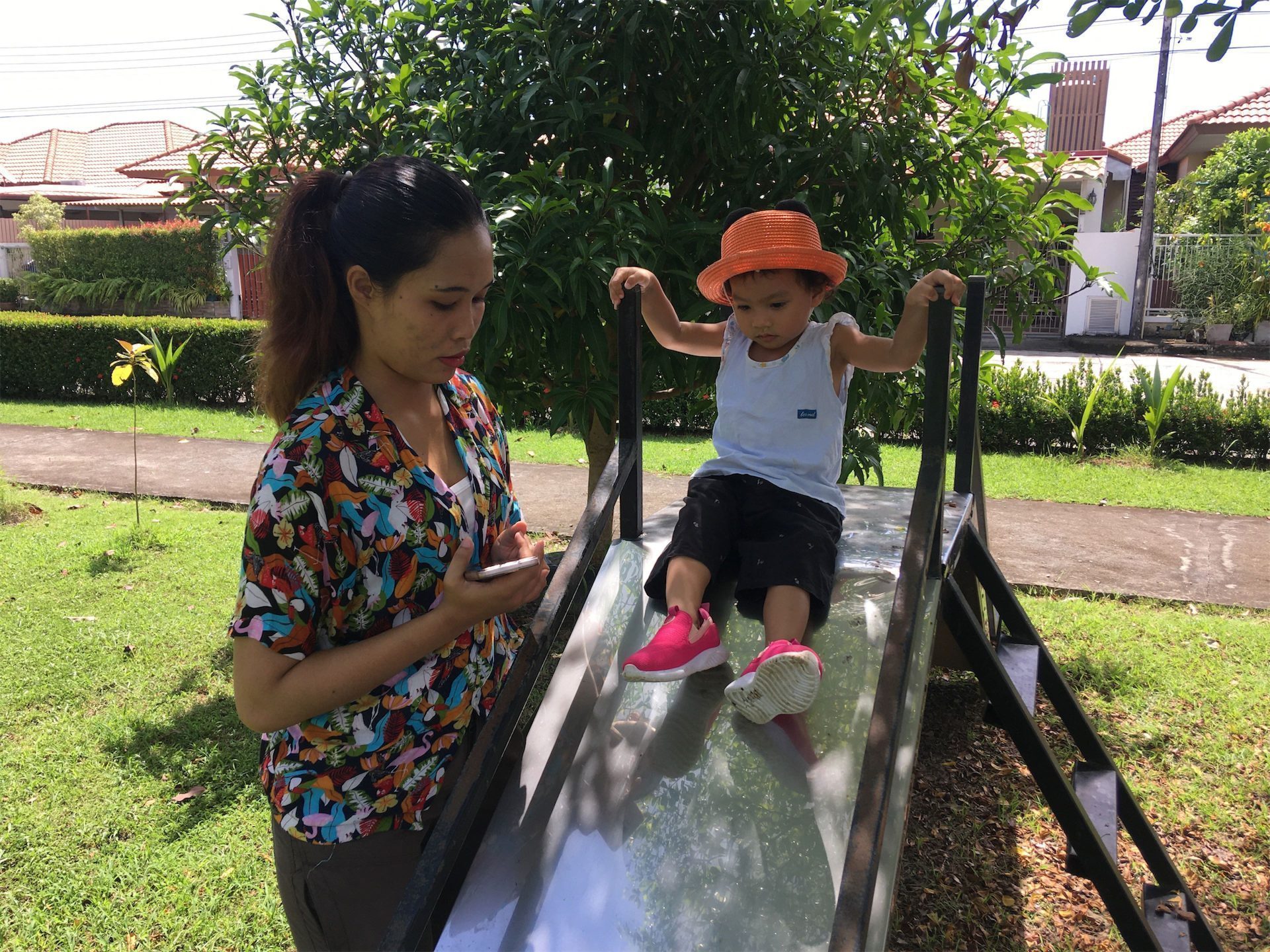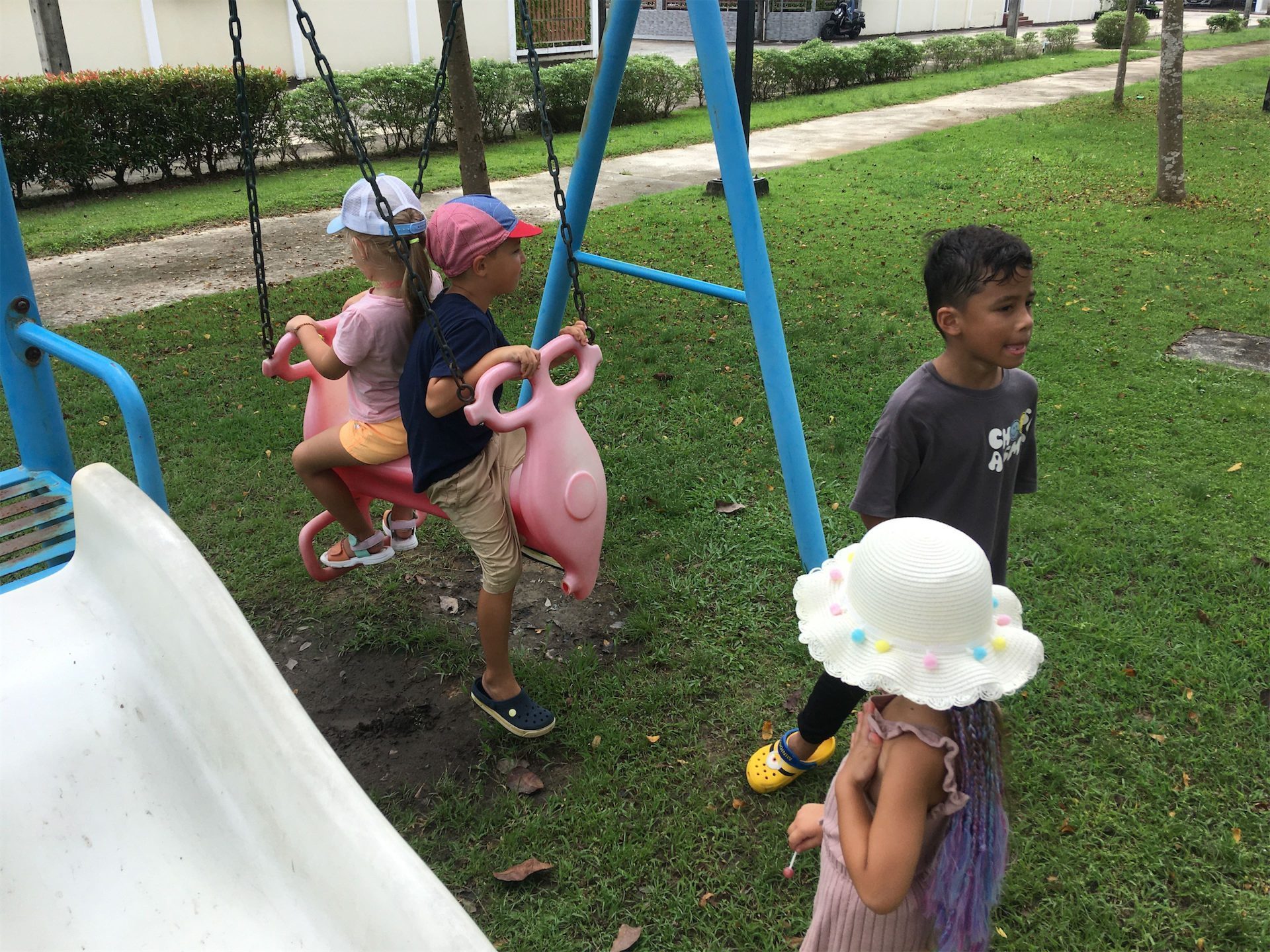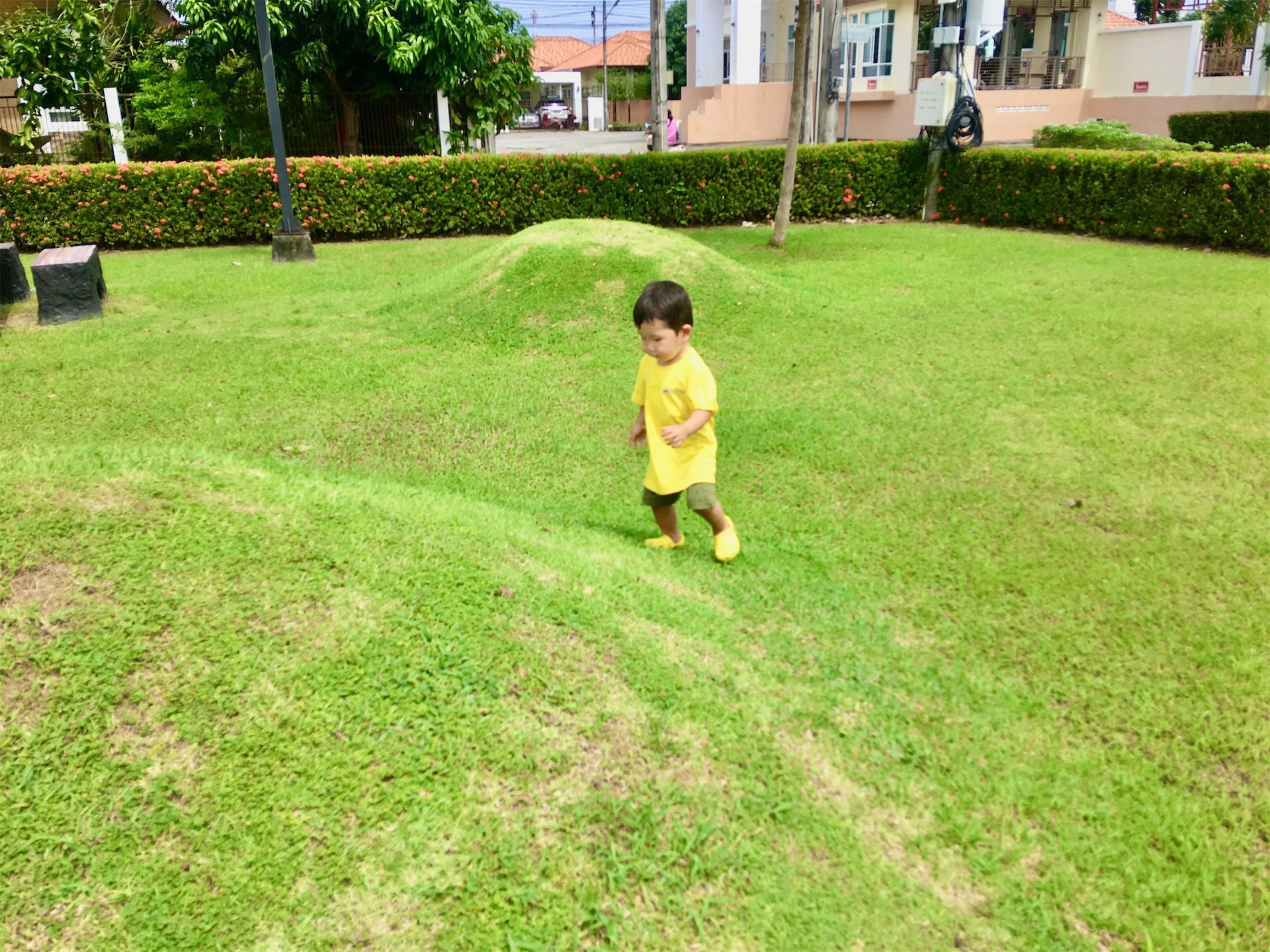 Walking to one of the three bigger parks at Phuket Chaofa Villa 2 is always great fun for the children. It is safe and many things can be seen and discovered along the way.